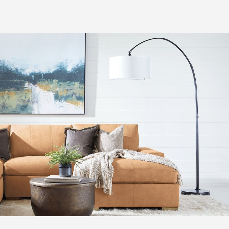 Mid Century Floor Lamp, Standing Lamp with Adjustable Hanging Drum Shade with Foot Switch Latitude and marble base.