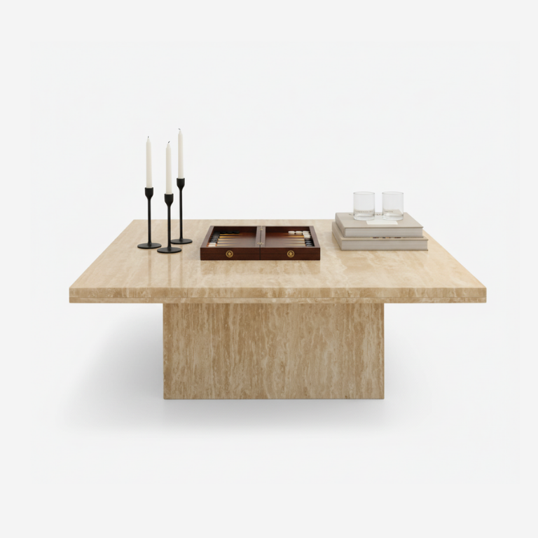 Introducing the striking Milano marble coffee table in travertine, where the elegance of marble harmonizes beautifully with your space. This exquisite piece features a stunning travertine marble tabletop and base. With its flawless design, the Roma coffee table promises to command attention as the centerpiece of your living area.