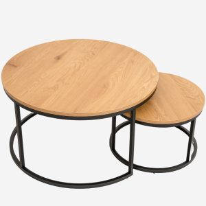 Spiro Coffee table comes as a set of two, This space saving design mixes metals and oak finish melamine into modern coffee tables with an industrial edge.